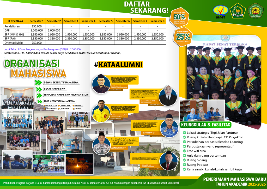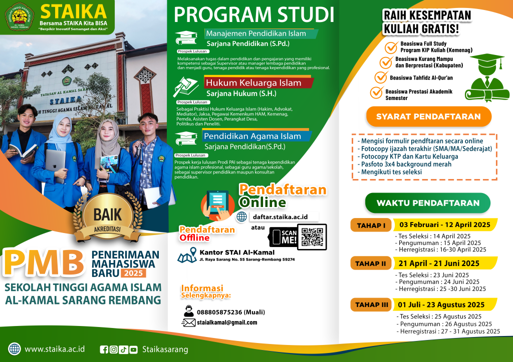 Brosur Penerimaan Mahasiswa Baru STAI Al-Kamal Sarang Rembang Tahun Akademik 2025-2026 Tinggalkan Komentar / Uncategorized / Oleh PMB